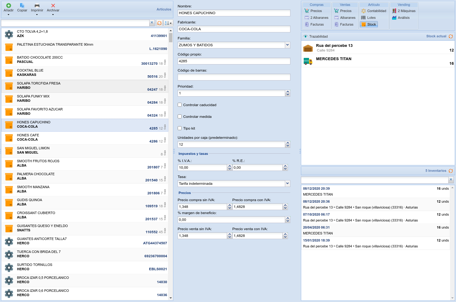 • Hemos agrupado por familias la lista de artículos presentes en cada vehículo y almacén para que se vea todo mas organizado.